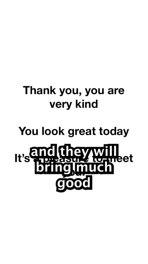 Thank you you’re very kind. You look really great today. It’s a pleasure to meet you. These sentences will bring a smile to your face and they will bring much good in your life. Because Allah has said this in the Quran: and say to people good things.