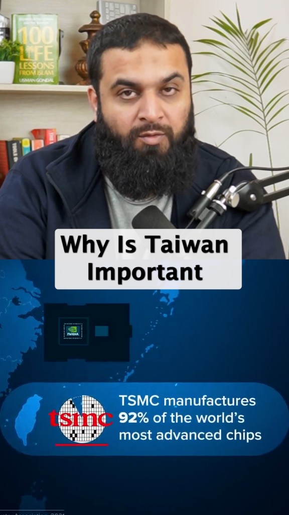 Now. Why is Taiwan so important? Because all of your chips in your phone and the ai chips are made in TSMC. A company called TSMC, the Taiwan Semiconductor Manufacturing Company. This is one of the very few places in the world where there is this specialized workforce. And the machines that make these chips, the United States and the Western sphere, is supporting Taiwan as an independent country, whereas China demands that Taiwan be accepted as a part of China.